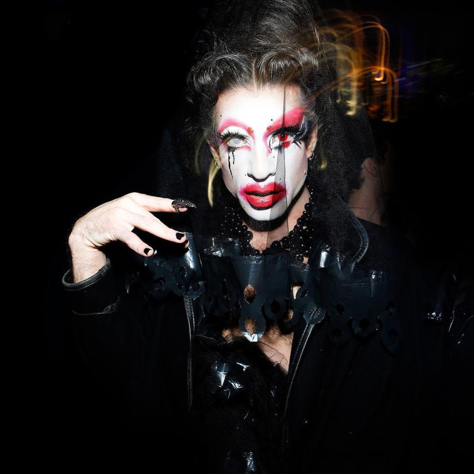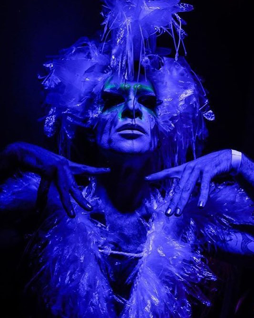 Robes, perruque et Accessoires Upcycling en plastiques de récup. portées par Miss Manly B lors des soirées “La Madame Klaude”
